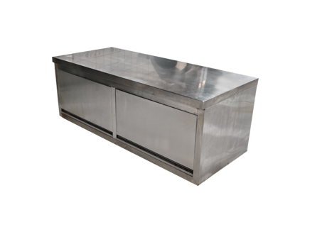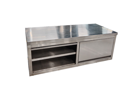 2、层板、侧板、围板、趟门面板均采用201# 1.0mm不锈钢制作;中置内层板;