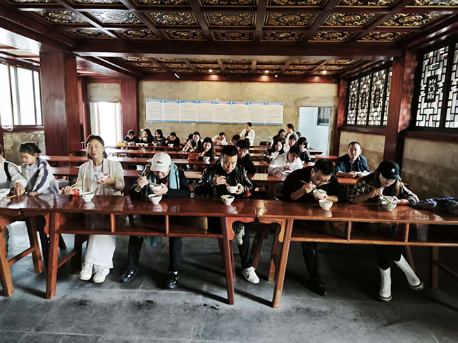 中午时,大家又在寺庙体验斋饭。